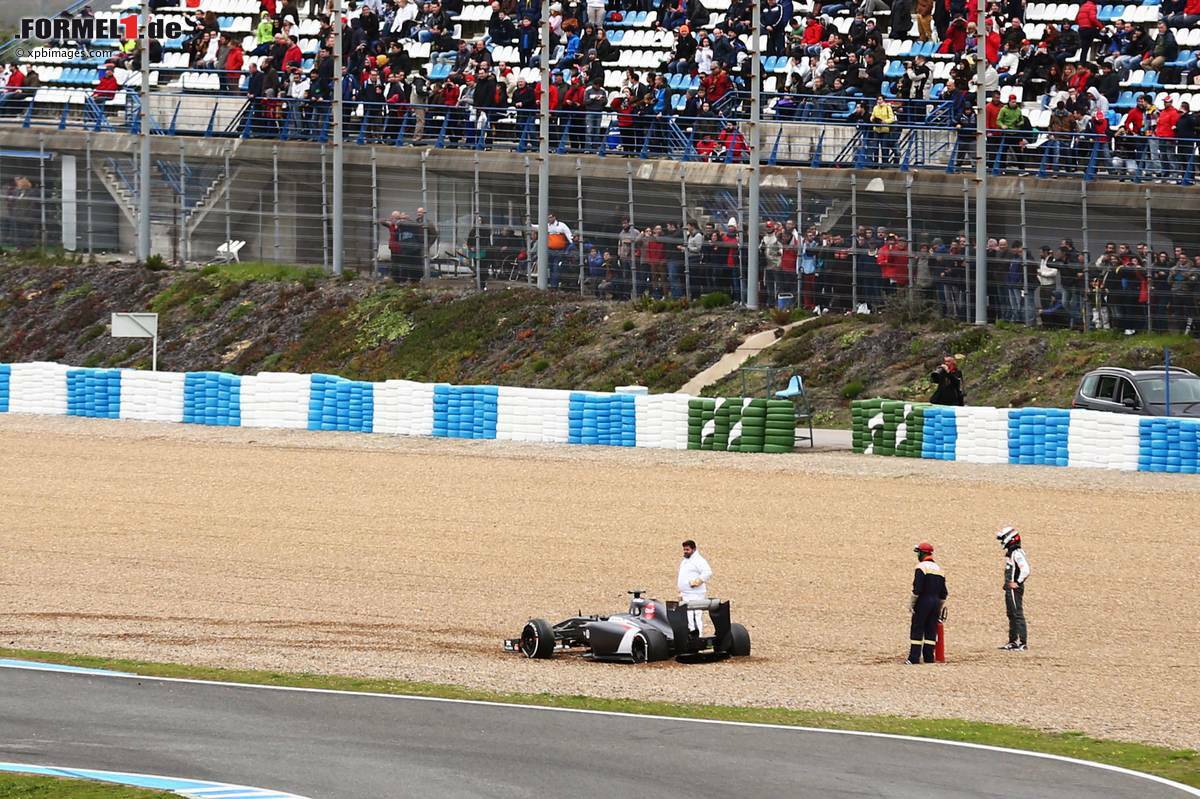 Sechseinhalb Stunden lang verlief die heutige Session übrigens ohne nennenswerte Zwischenfälle, ehe dann doch erstmals unterbrochen werden musste. Genau wie gestern verlor Adrian Sutil (7.) die Kontrolle über seinen Sauber. Etwa eine halbe Stunde später war dann McLaren-Rookie Kevin Magnussen mit einem Dreher dran. Der Däne, gestern bei seinem ersten Auftritt 2014 gleich Tagesschnellster, landete nach sagenhaften 110 Runden (!) an vierter Stelle.