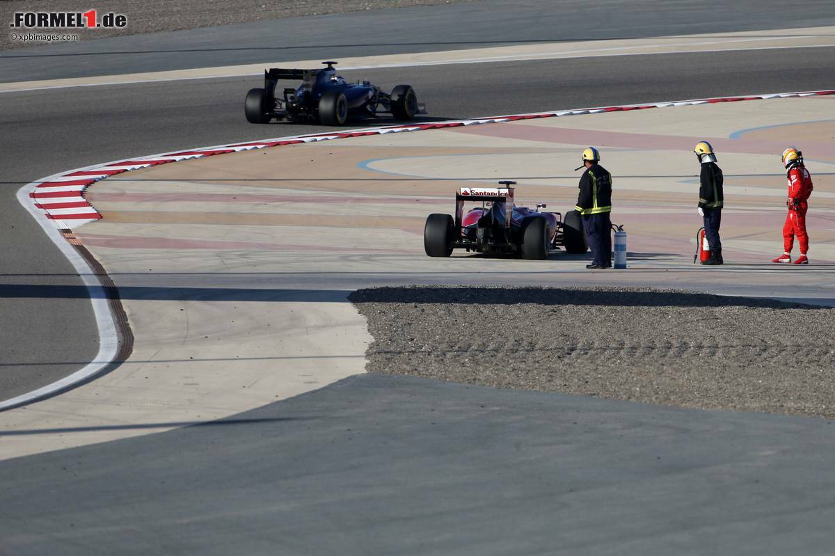 Auch heute war Fernando Alonso im Ferrari erster Verfolger der beiden derzeitigen Topteams, ebenfalls mit einer Sekunde Rückstand. Der Spanier blieb am Vormittag einmal in der Boxengasse stehen, erlitt gegen Mittag einen Getriebeschaden und verursachte später eine von insgesamt acht roten Flaggen. Trotz der vielen Unterbrechungen schafften aber zwei Fahrer mehr als 100 Runden: Bottas (108) und, trotz Kupplungsproblemen, Kamui Kobayashi (11./Caterham/106).