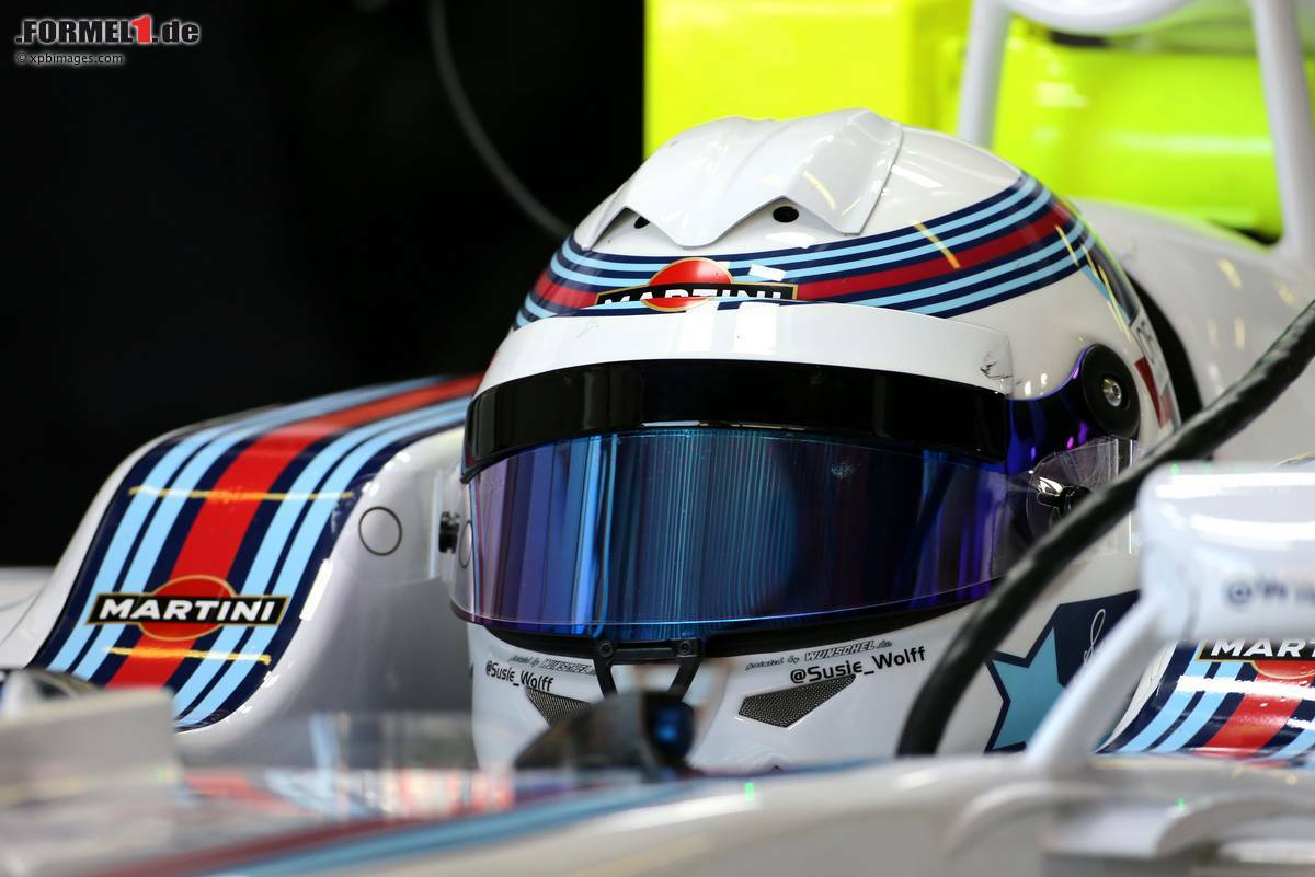 Die hübsche Blondine Susie Wolff musste sich am Mittwoch unter einem Helm verstecken: Sie testete erstmals den aktuellen Williams-Boliden.