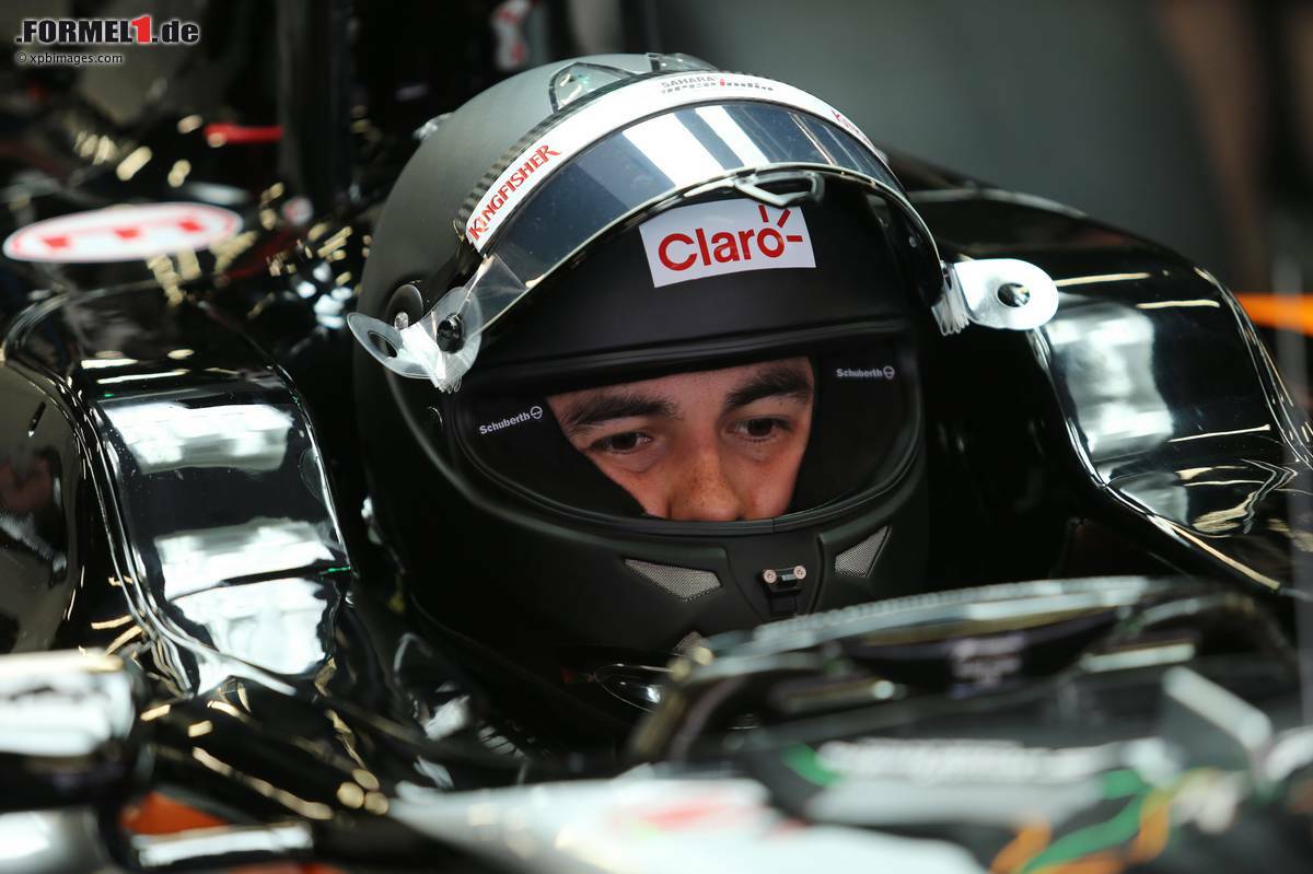 Daraufhin steig Sergio Perez kurzfristig in den Force India. Sein Helm war aber so schnell nicht griffbereit, weshalb der Mexikaner auf einen neutralen schwarzen Kopfschutz zurückgreifen musste.