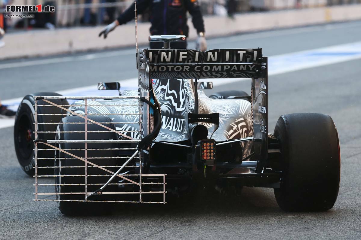 Daniel Ricciardo fuhr am Vormittag Aero-Tests, wozu sein immer noch getarnter Red Bull mit Sensoren versehen war.
