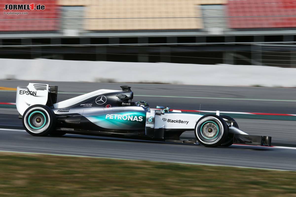 (Motorsport-Total.com) - Mercedes hat nach wochenlangem Taktieren gezeigt, was im neuem Silberpfeil namens W06 steckt: Am Freitag markierte Nico Rosberg beim dritten und letzten Formel-1-Wintertest in Barcelona die Tagesbestzeit in 1:22.792 Minuten. Der Umlauf auf der weichen Pirelli-Mischung war die schnellste im Jahr 2015 auf dem Circuit de Catalunya gedrehte Runde. Der Deutsche pulverisierte die von Williams-Pilot Felipe Massa am Donnerstag auf Supersoft aufgestellte Marke (1:23.500 Minuten).