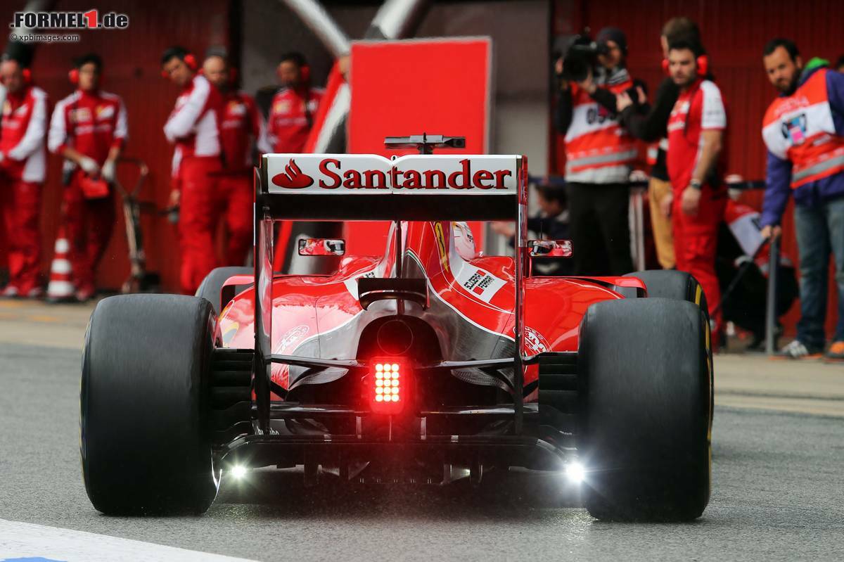 Eine Rennsimulation des vierfachen Champions am Nachmittag sorgte jedoch für auf den ersten Blick ernüchternde Ergebnisse, schließlich blieb der SF15-T mit viel Sprit deutlich hinter dem Mercedes-Tempo zurück (wieso die Testfahrten aber mit Vorsicht zu interpretieren sind). Ferrari zeigte am Vormittag eine interessanten Konstruktion zur Ermittlung des Reifenverschleiß. Am Heck wurde eine Kamera mitsamt LED-Leuchten installiert, um Konturen und Verformungen während der Fahrt erkennen zu können.