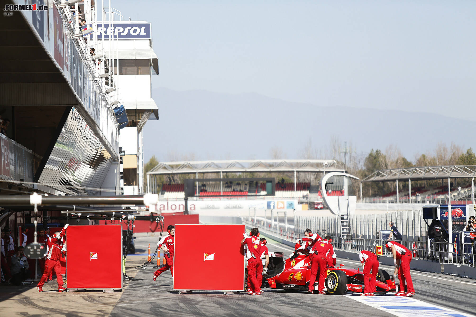 Eine Rennsimulation des vierfachen Champions am Nachmittag sorgte jedoch für auf den ersten Blick ernüchternde Ergebnisse, schließlich blieb der SF15-T mit viel Sprit deutlich hinter dem Mercedes-Tempo zurück (wieso die Testfahrten aber mit Vorsicht zu interpretieren sind). Ferrari zeigte am Vormittag eine interessanten Konstruktion zur Ermittlung des Reifenverschleiß. Am Heck wurde eine Kamera mitsamt LED-Leuchten installiert, um Konturen und Verformungen während der Fahrt erkennen zu können.