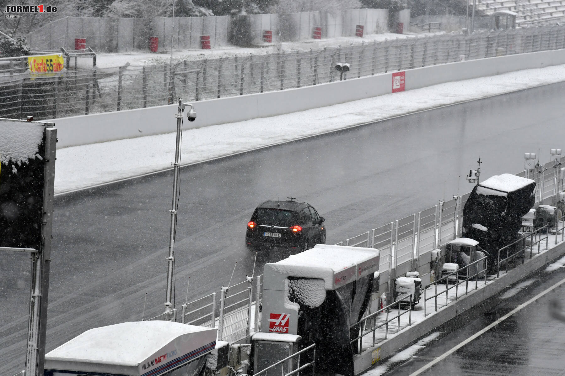 Kuriose "Wintertests" am Mittwoch in Barcelona: Schneefall verhindert einen Fahrbetrieb am Morgen - Die besten Fotos vom Schneechaos in der Formel 1
