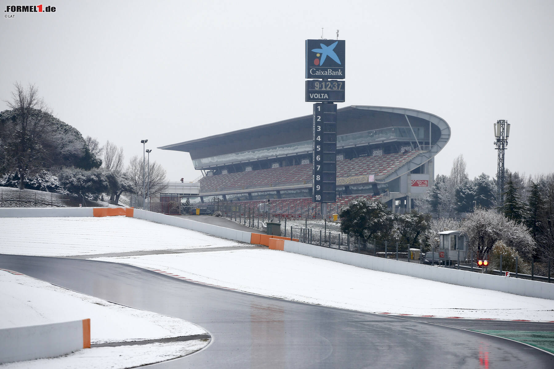 (Motorsport-Total.com) - Die "Wintertestfahrten" der Formel 1 in Barcelona (Live-Ticker) werden ihrem Namen am Mittwochmorgen voll gerecht. Weil der Circuit de Barcelona-Catalunya über Nacht mit Schnee "überzuckert" wurde, musste der geplante Testbeginn um 9:00 Uhr zunächst verschoben werden.