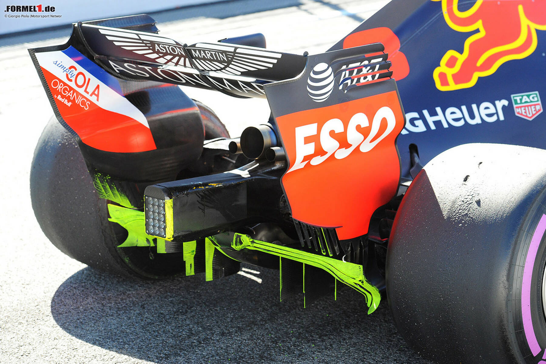 Red Bull hat den Diffusor mit FloViz-Farbe eingepinselt. So kann am Muster der Farbe nach einem Run festgestellt werden, ob sich die Luftströmungen in der Praxis genauso verhalten wie in der Simulation.