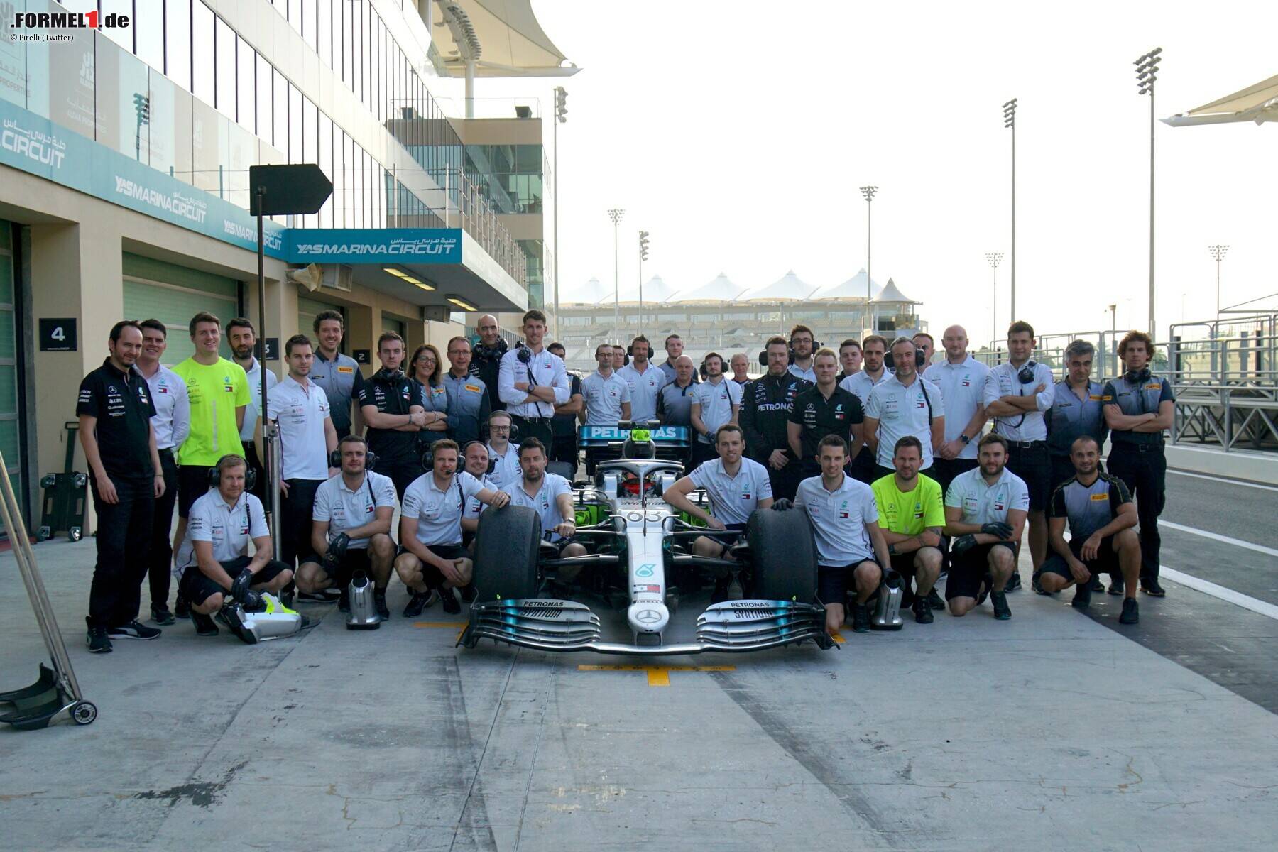 Mercedes-Kaderfahrer George Russell drehte am Sonntag 100 und am Montag nochmal 118 Runden auf dem Yas-Marina-Circuit, der exklusiv für den Ein-Auto-Test gemietet wurde. Rundenzeiten standen dabei nicht im Vordergrund und wurden naturgemäß nicht bekannt gegeben.